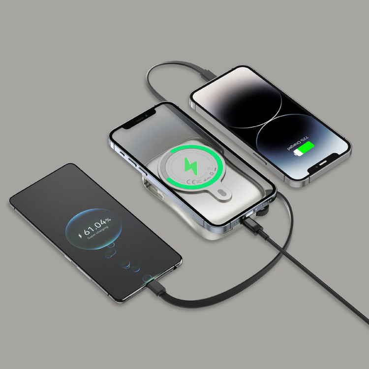 پاوربانک 30 واتی مگ سیف گرین لاین به آهنربای نئودیمیوم فوق العاده قوی مجهز شده است که به دستگاه شما محکم می چسبد و می تواند هم موبایل را با کابل شارژ کند و هم موبایل هایی که دارای قابلیت شارژ بی سیم هستند رو به صورت وایرلس شارژ کند، همین طور این دستگاه دارای ویژگی آهنربایی یا مگ سیف برای موبایل های آیفون 12 به بالا است و آن ها را در این حالت شارژ می کند. لازم به ذکر است که این محصول دارای دو کابل یکپارچه متصل به بدنه و یک درگاه USB-C می باشد و ولتاژ و شدت جریان ورودی آن که برای شارژ کردن این کالا مناسب است، 5V/2.4A بوده و این نکته مهم است که با شارژر مناسب آن را شارژ کنید که با این ورودی ها متناسب باشد. توان خروجی شارژ وایرلس آن تا حداکثر 15 وات و توان خروجی درگاه USB-C آن تا حداکثر 30 وات است.